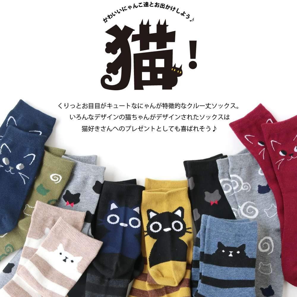 くりっとお目目がキュートな、にゃんこが特徴的なクルー丈ソックス♪