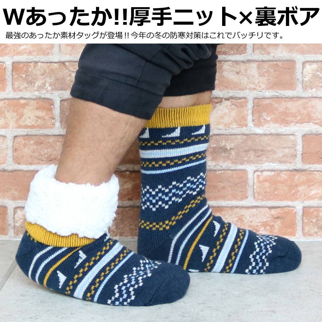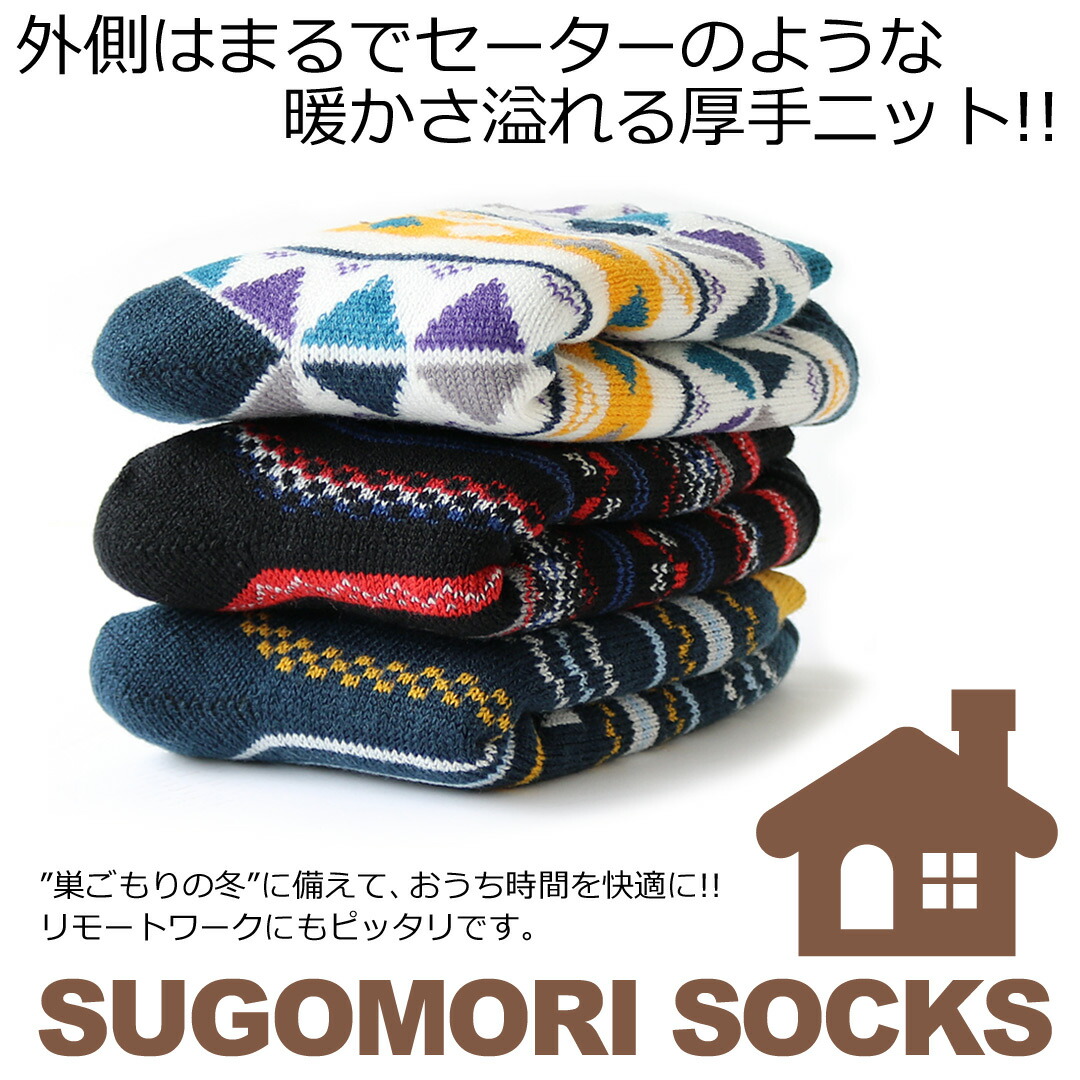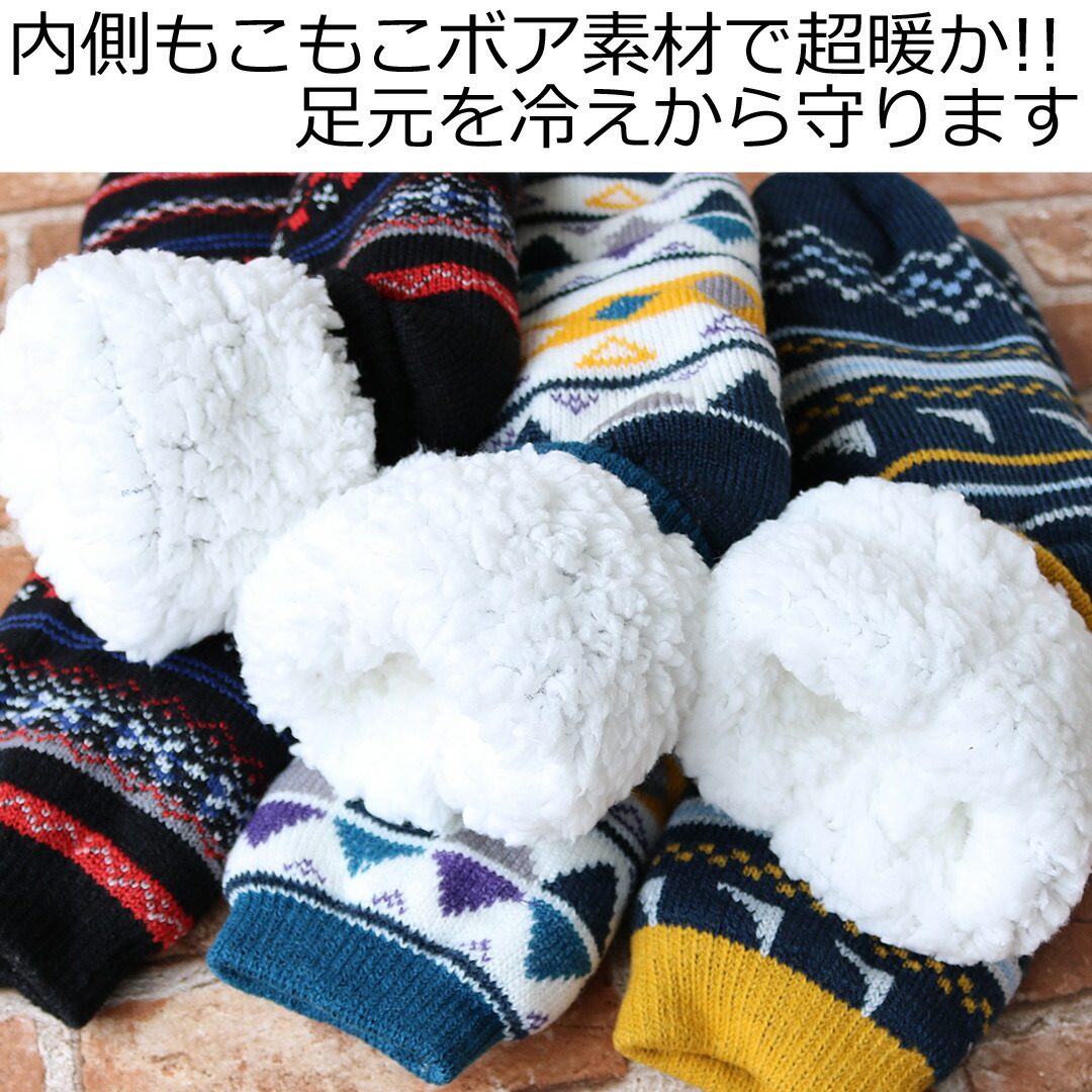 【SUGOMORI SOCKS☆】 紳士 あったかふわふわ内側ボアルームソックス アウトドア柄