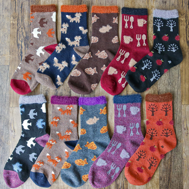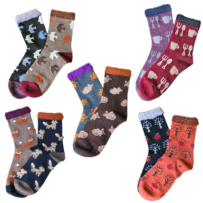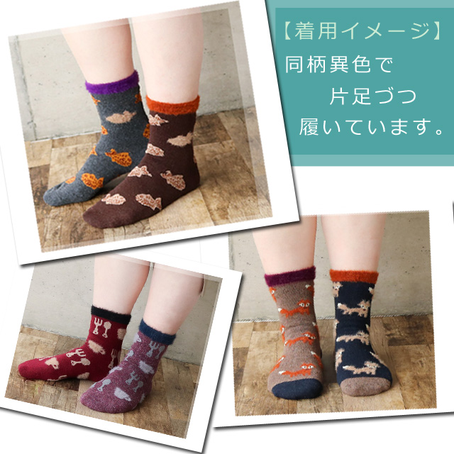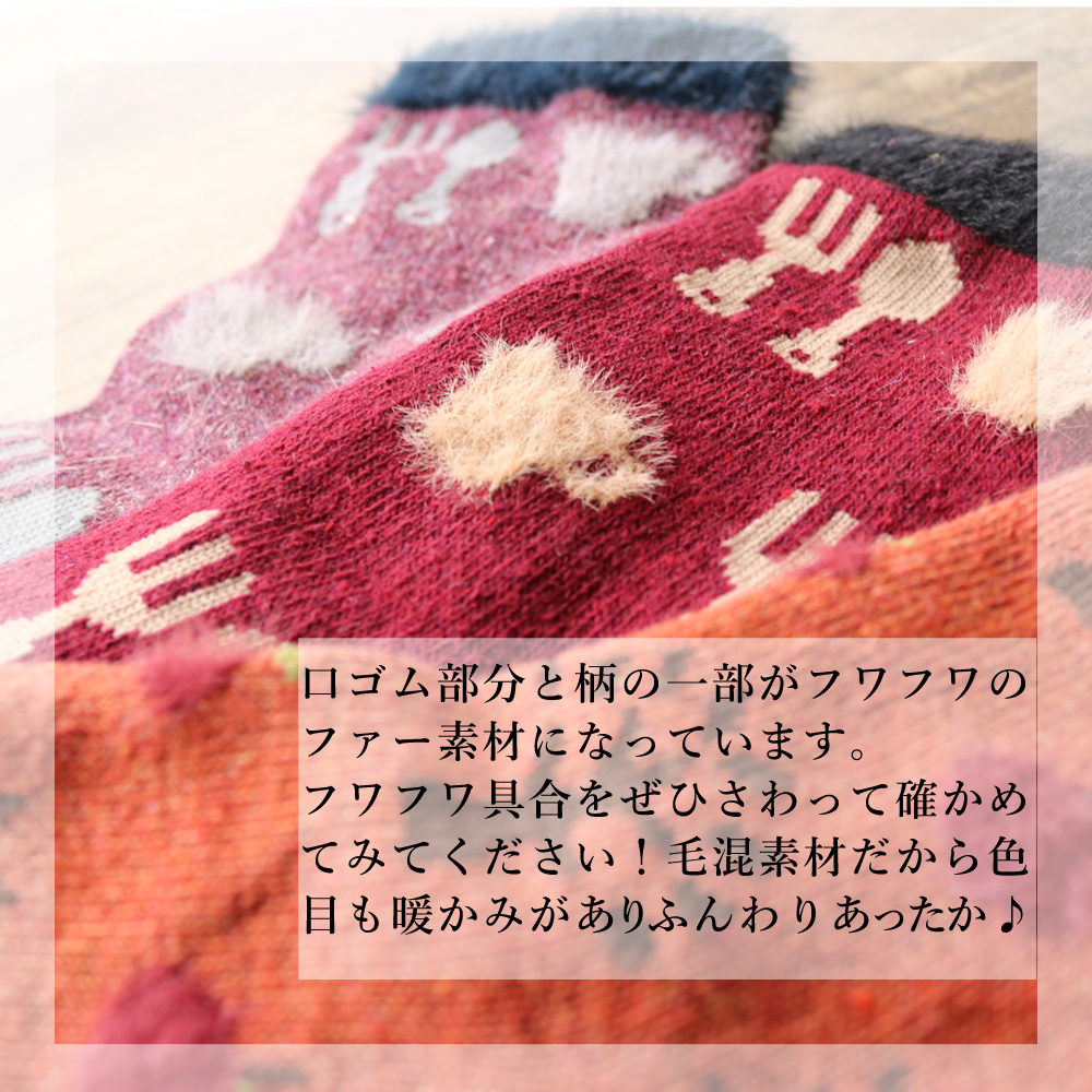 【おしゃれであったか☆】 婦人 毛混ファークルー丈ソックス 手ぬぐい雑貨柄