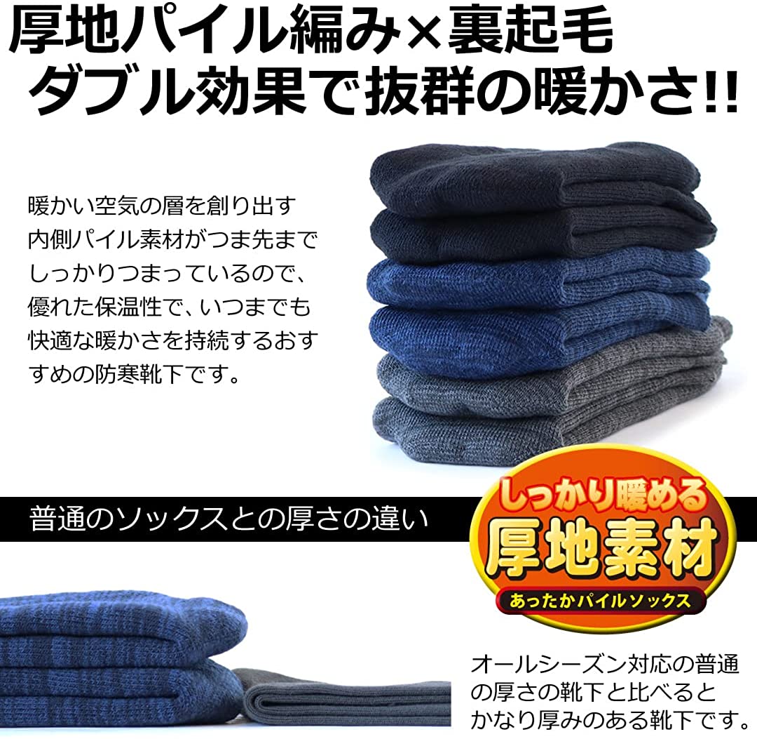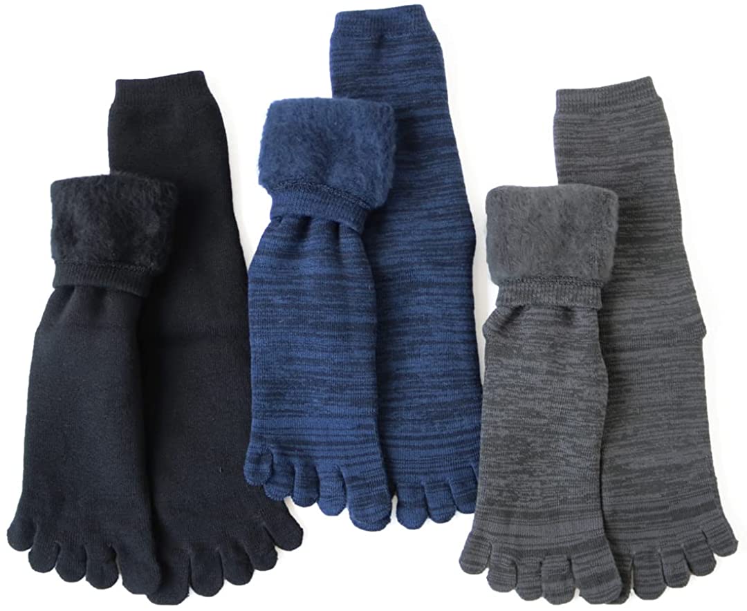 【ダブル効果で抜群の暖かさ☆】 紳士 あったか裏起毛5本指ソックス 極厚/パイル/3カラー展開