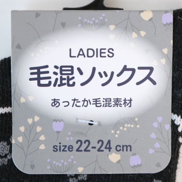 【秋冬マストアイテム☆】 婦人 あったか毛混クルー丈ソックス ねこ/モノトーン柄