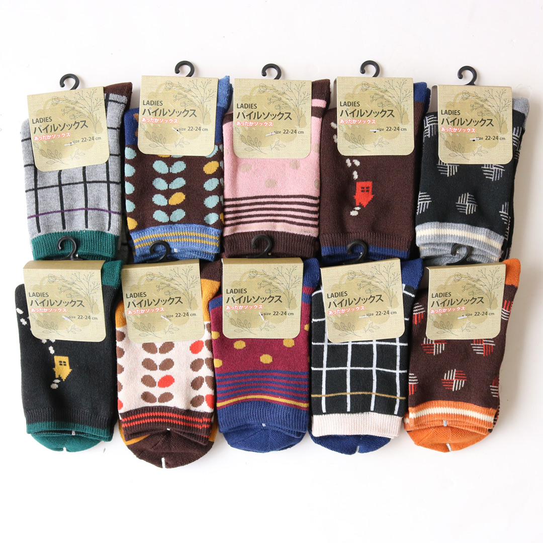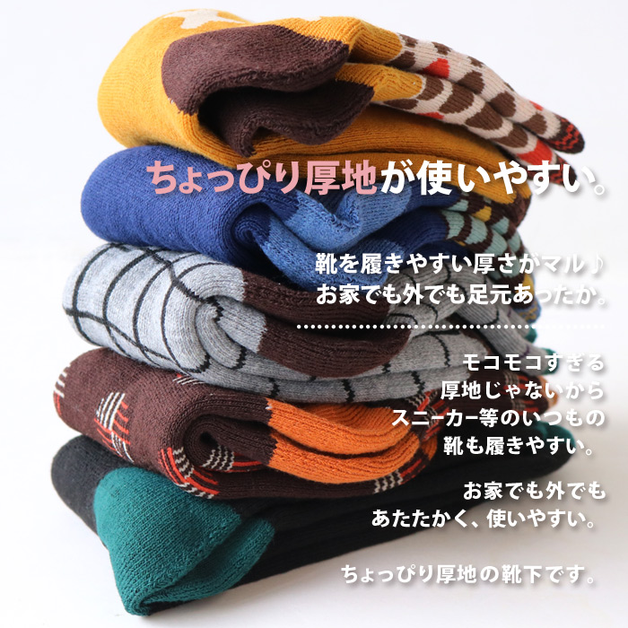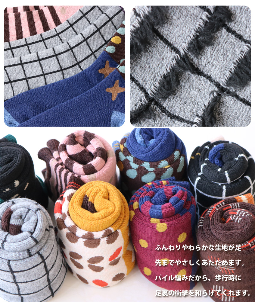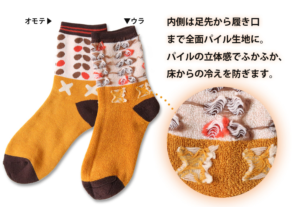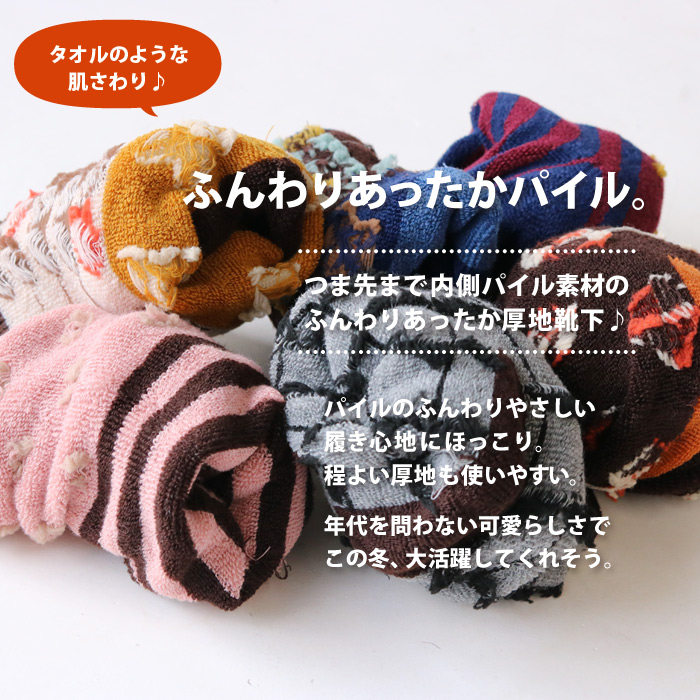 【ふんわりタオルのような肌さわり☆】 婦人 あったか裏パイルクルー丈ソックス 雑貨柄