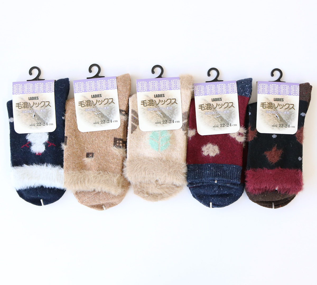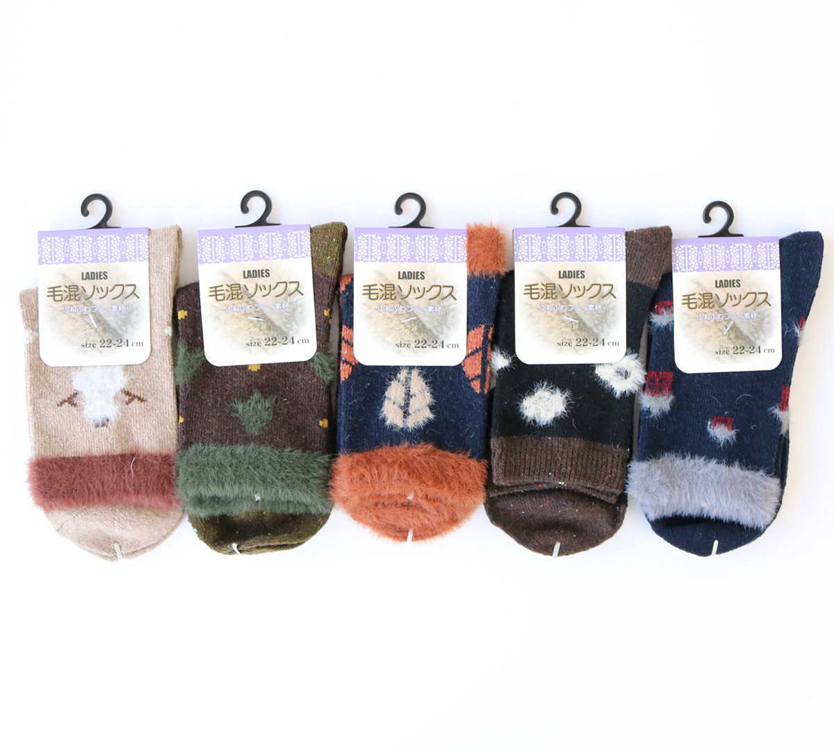 【秋冬マストアイテム☆】 婦人 あったか毛混ファークルー丈ソックス 雑貨柄