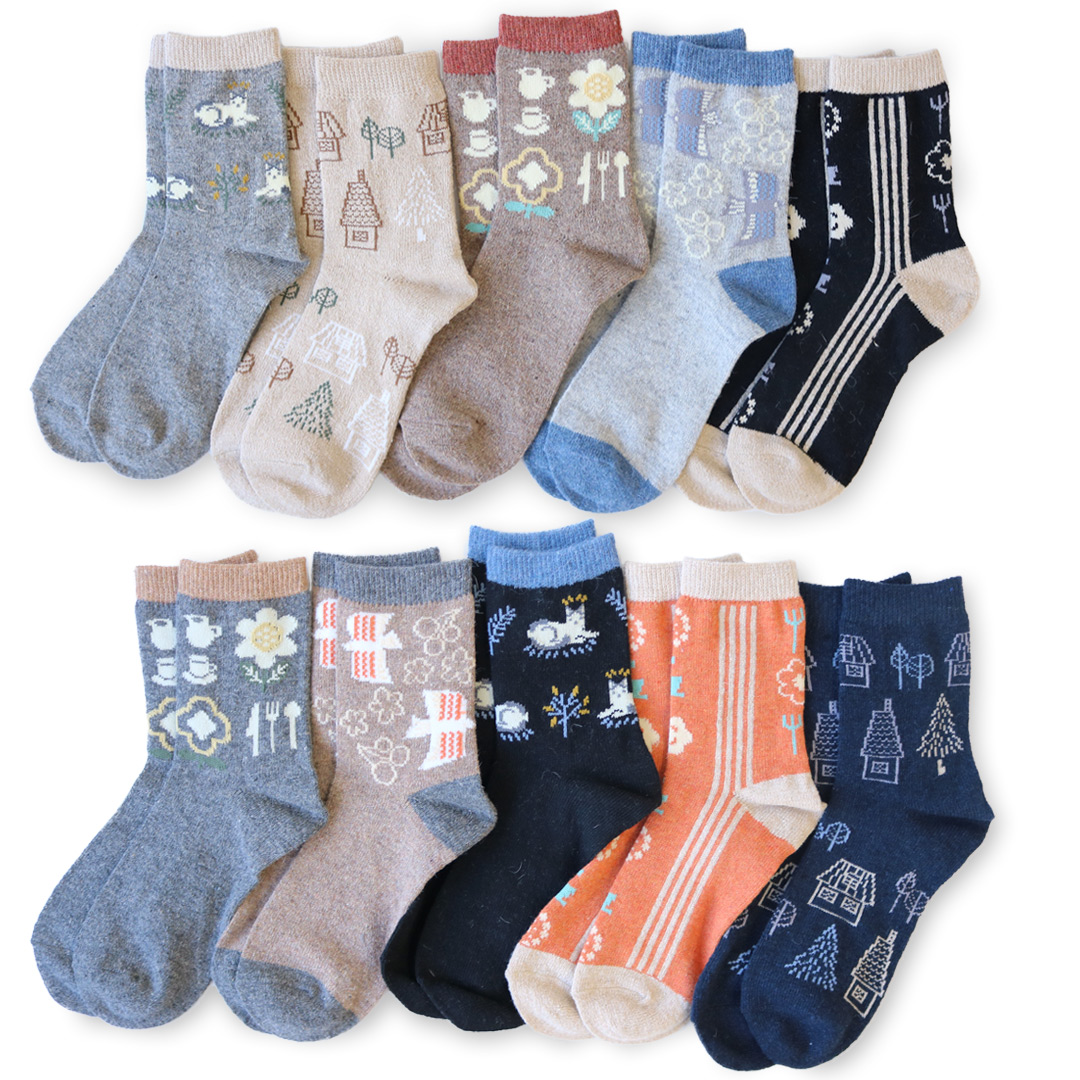 【秋冬マストアイテム☆】 婦人 あったか毛混クルー丈ソックス アソートB柄/25AW