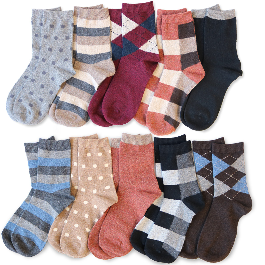 【秋冬マストアイテム☆】 婦人 あったか毛混クルー丈ソックス アソートC柄/25AW