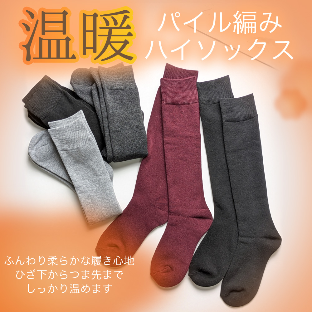 秋冬マストアイテム☆婦人あったかパイル編みハイソック新入荷です♪