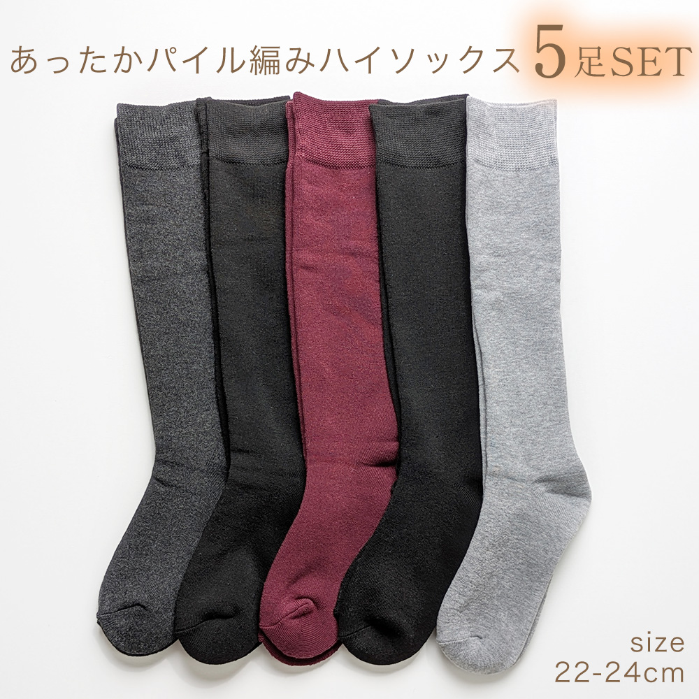 【ふんわり柔らかな履き心地☆】 婦人 あったかパイル編みハイソックス 4色/シック/無地