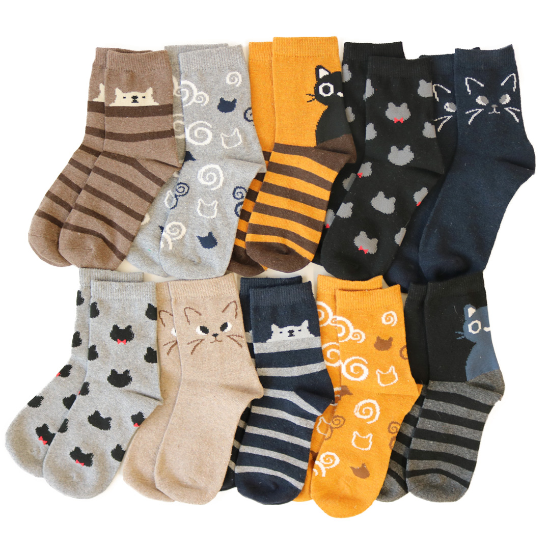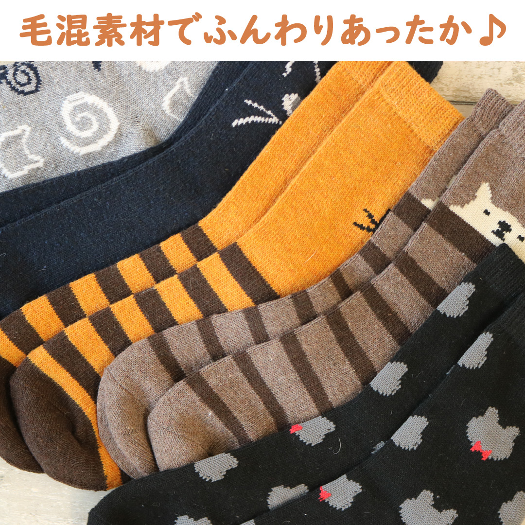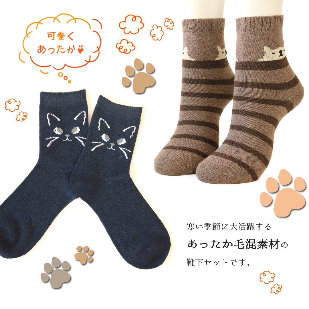 【秋冬マストアイテム☆】 婦人 あったか毛混クルー丈ソックス ねこ柄