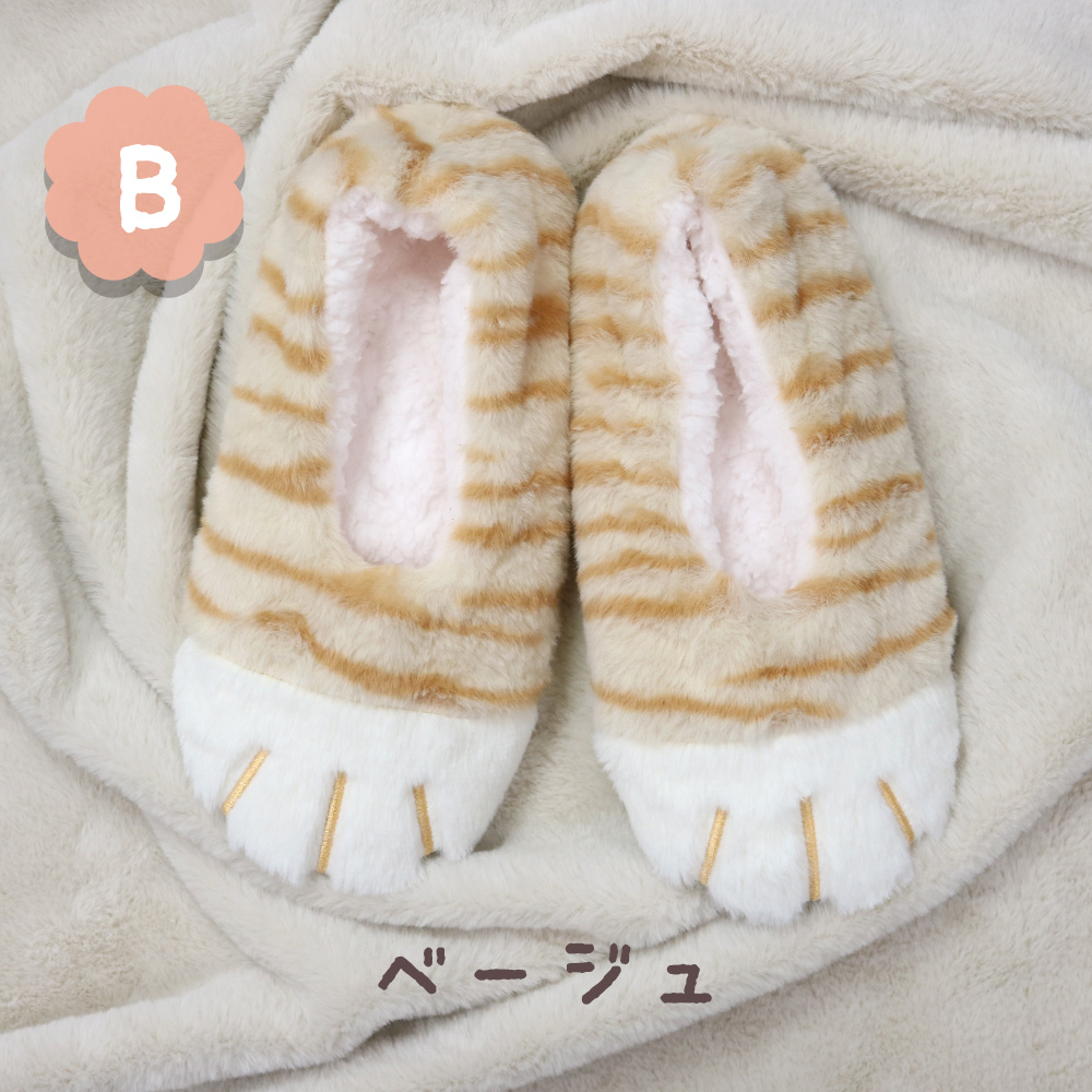 【にゃんとも可愛く暖か☆】 婦人 内側ボアあったかルームシューズ ねこ足柄/Cアソート/滑り止め付き