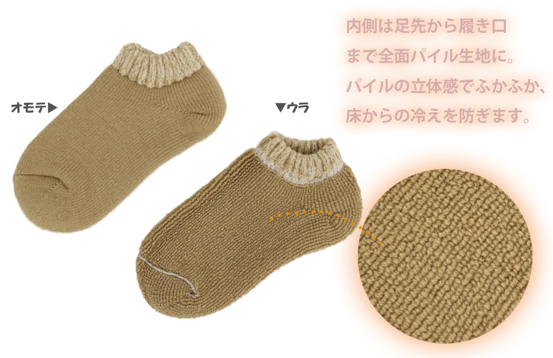 内側は足先から履き口まで全面パイル生地♪パイルの立体感でふかふか