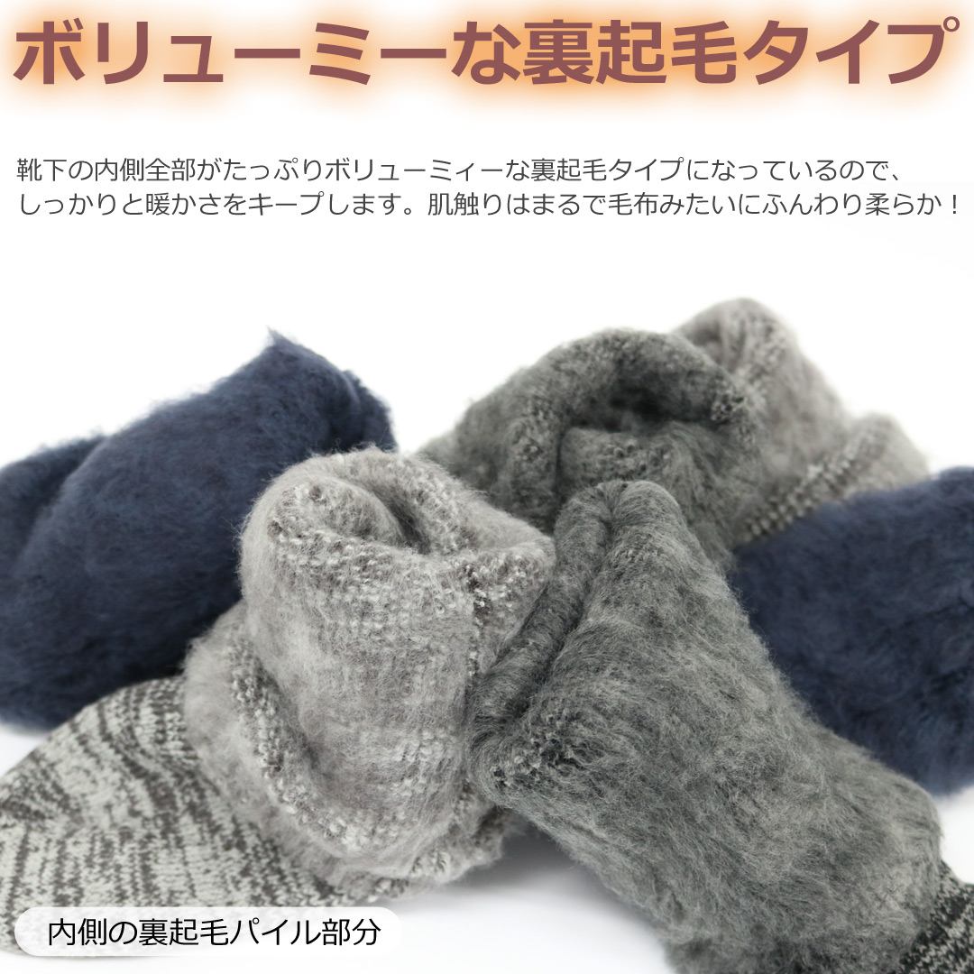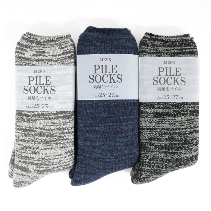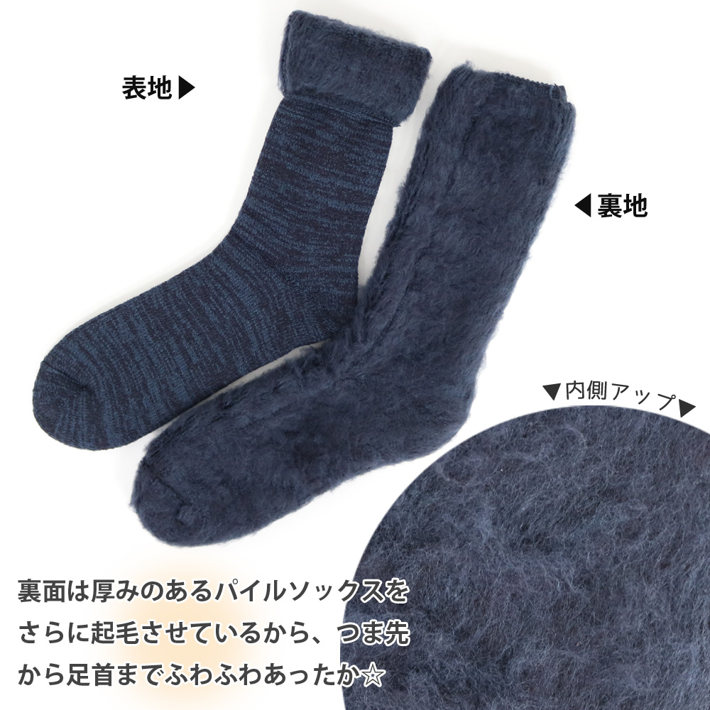 【冬の冷え対策に☆】 紳士 あったか裏起毛パイルクルーソックス 【ヒキソロエ/3カラー展開】