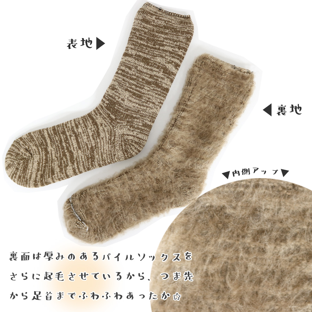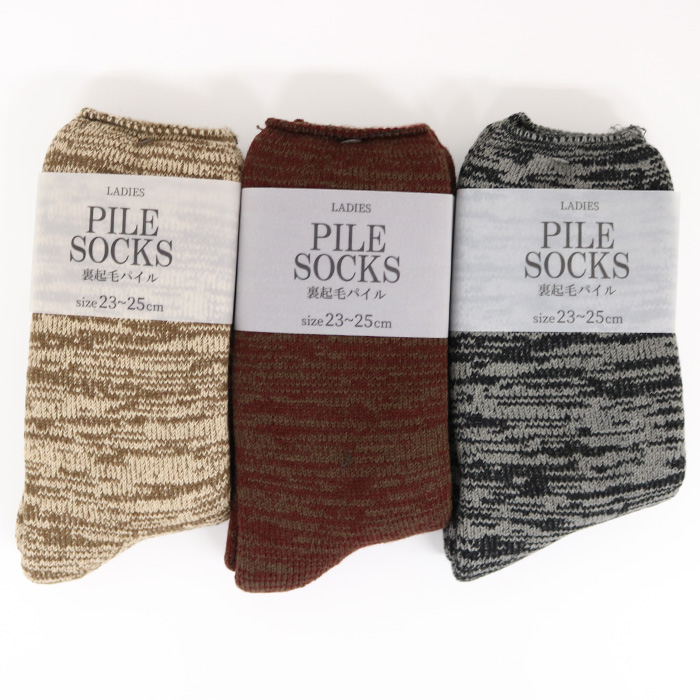 【冬の冷え対策に☆】 婦人 あったか裏起毛パイルクルーソックス 【ヒキソロエ/3カラー展開】