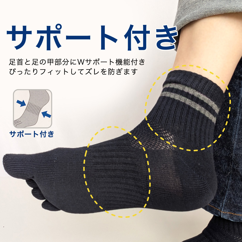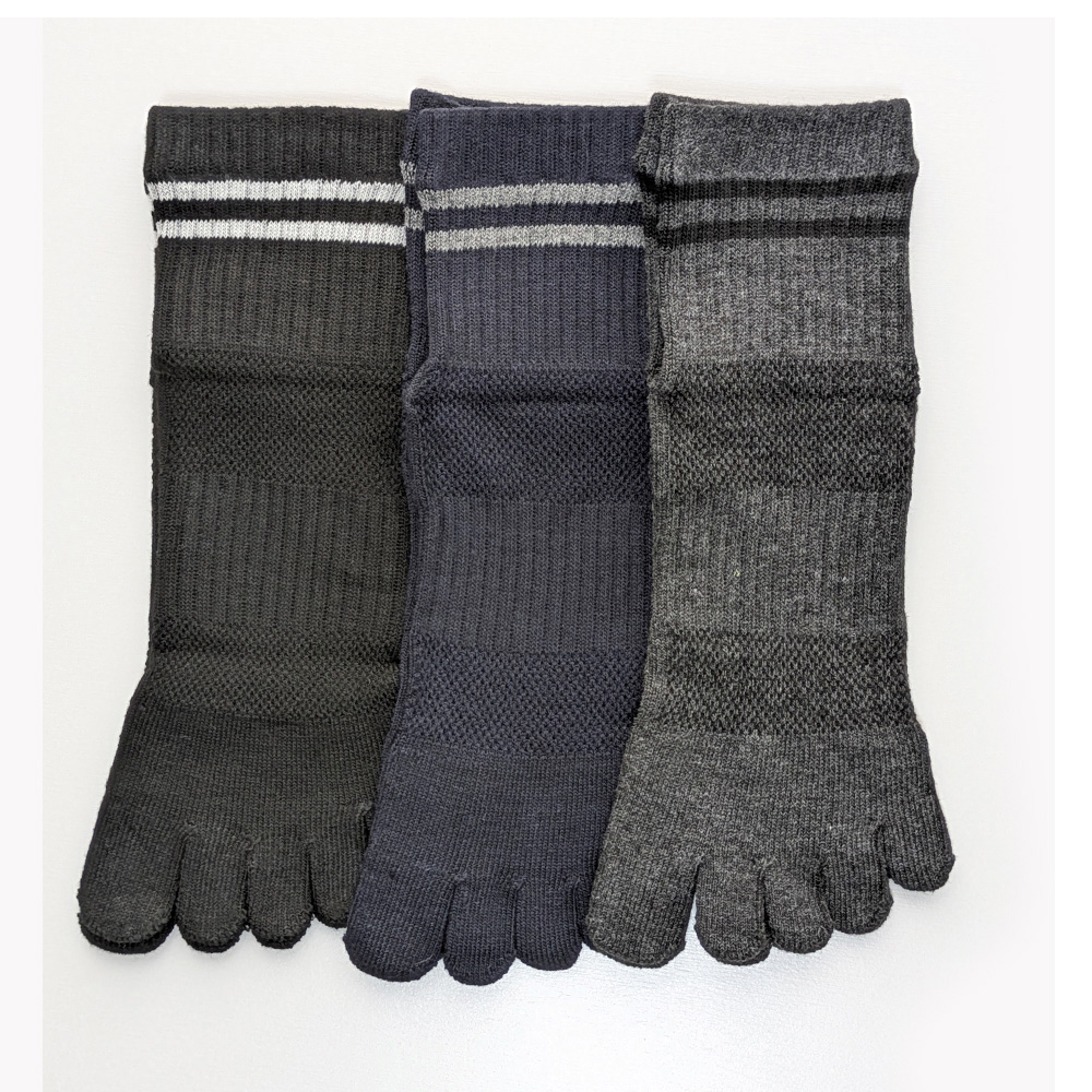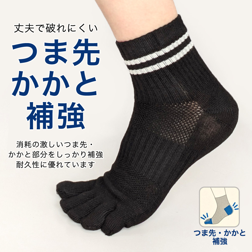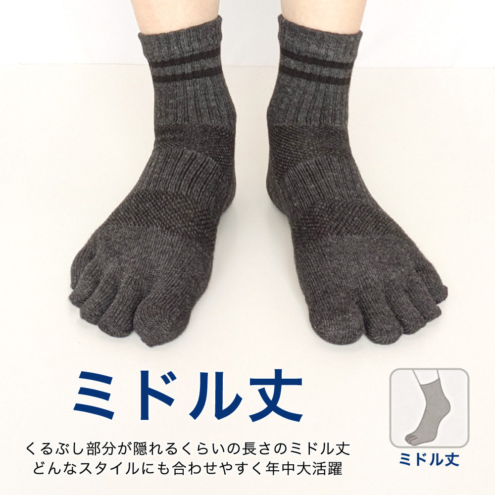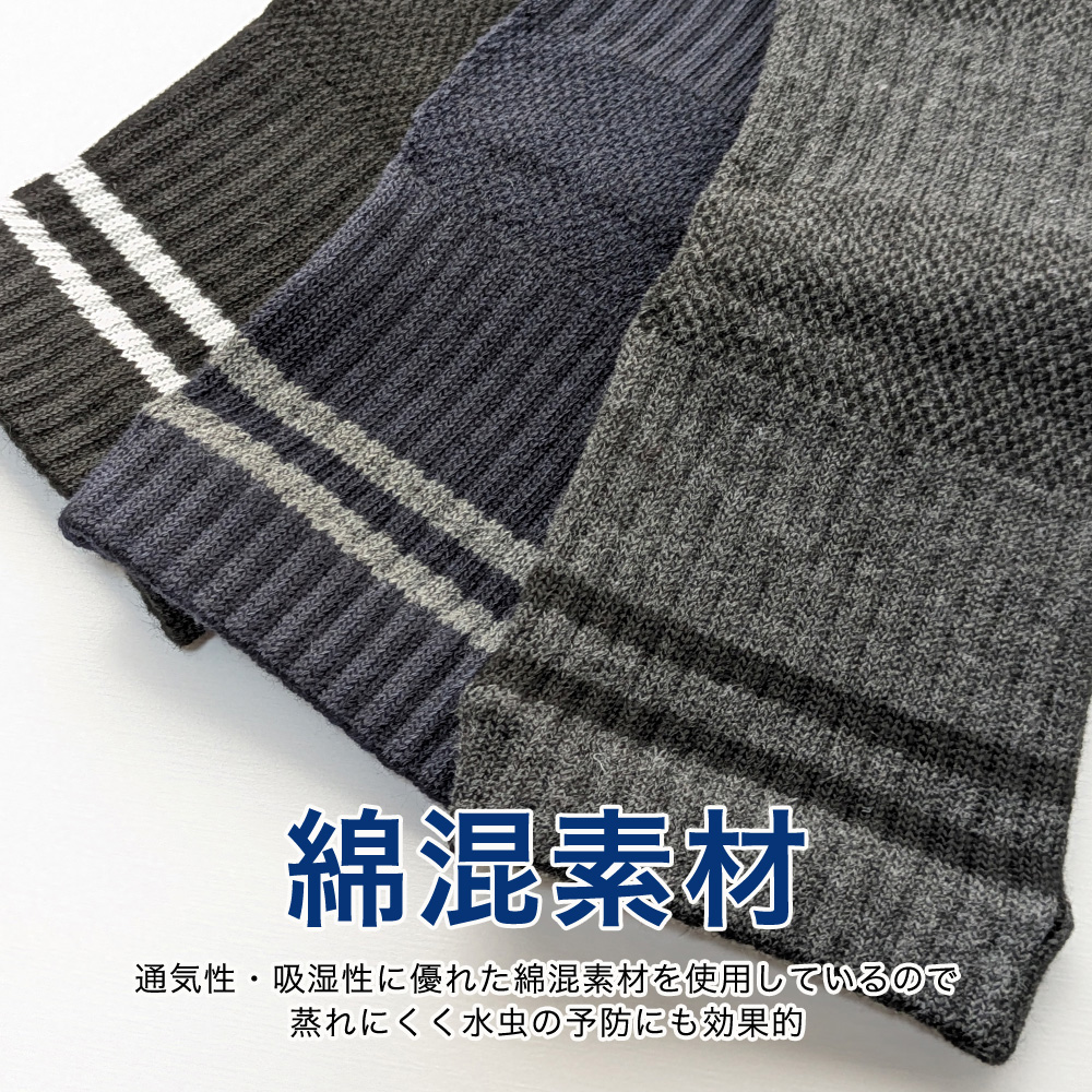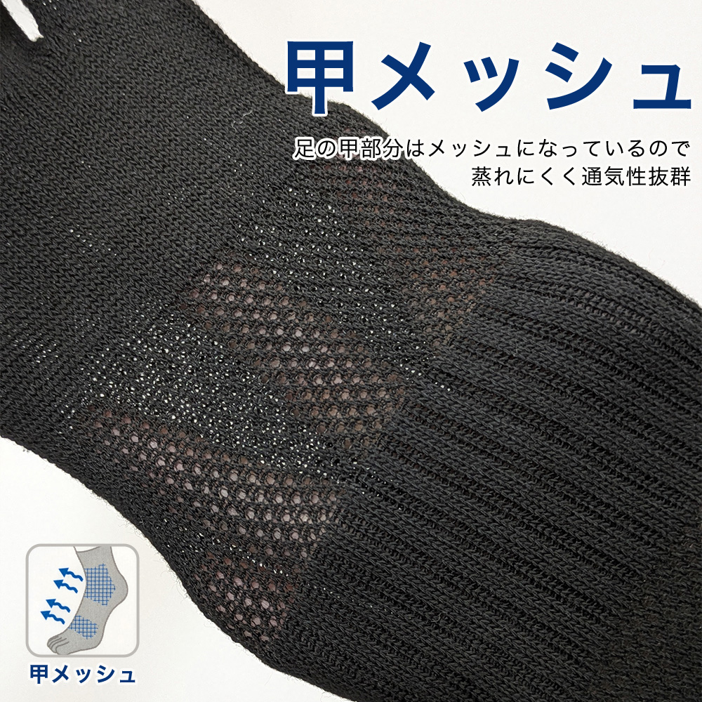 【年間定番】 紳士 綿混ミドル丈5本指ソックス つま先・かかと補強/サポート付/甲メッシュ/大寸/3足組