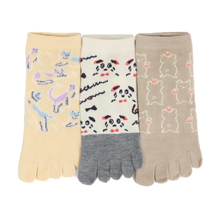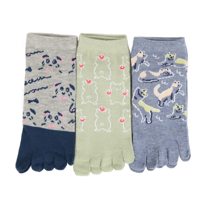 婦人ショート丈5本指ソックス 手書き風アニマル柄