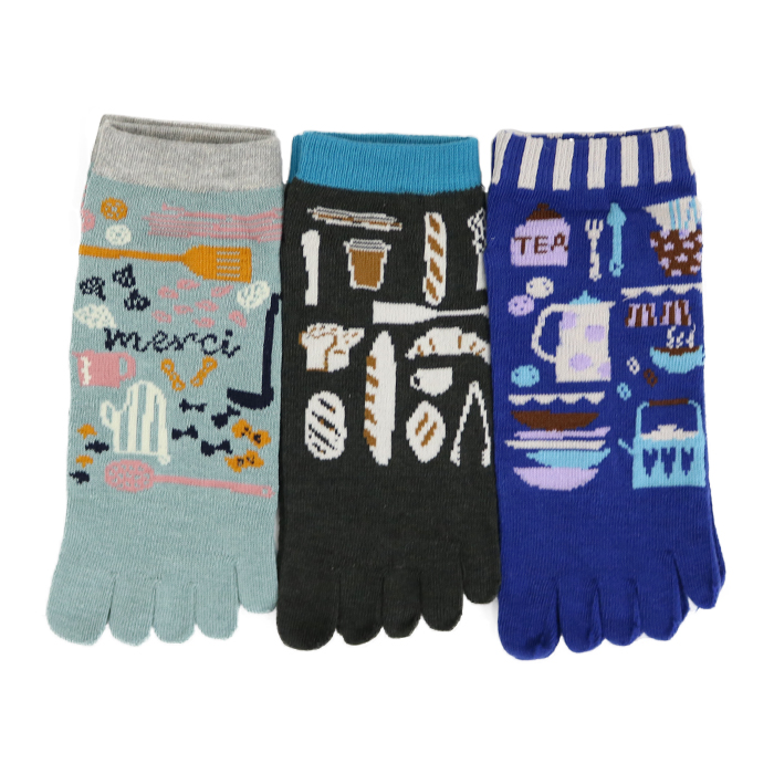 婦人ショート丈5本指ソックス 北欧風雑貨柄